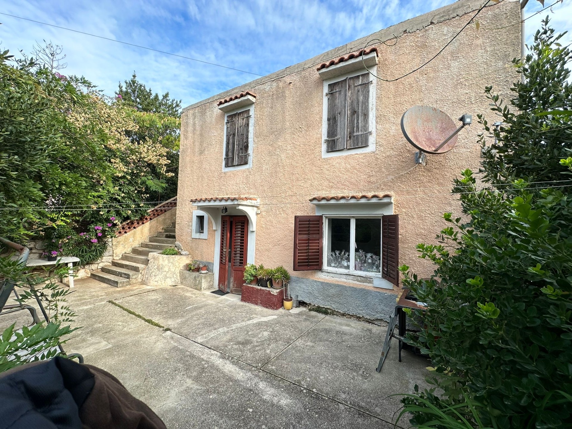 Prodaje se 1/2 dijela cijele nekretnine (kuća sa okućnicom od 355 m2) u mjesto Ćunski, Mali Lošinj, što u naravi čini stan na katu cca 80 m2 tlocrtne površine te polovica okućnice od 355 m2.